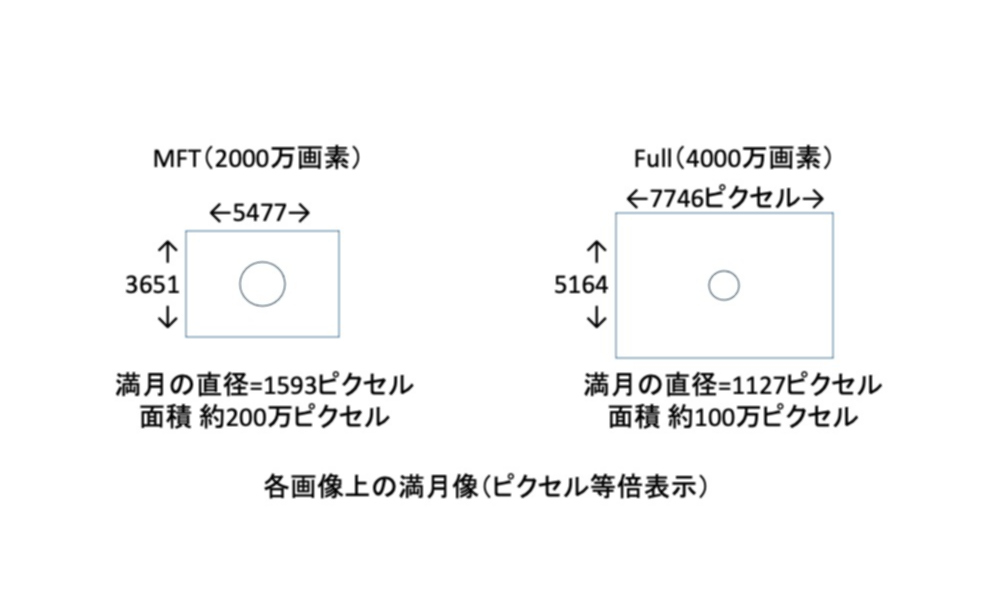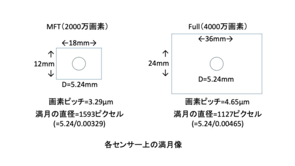 センサーサイズとは無関係に同じ大きさの満月像がセンサーに結像することになります。